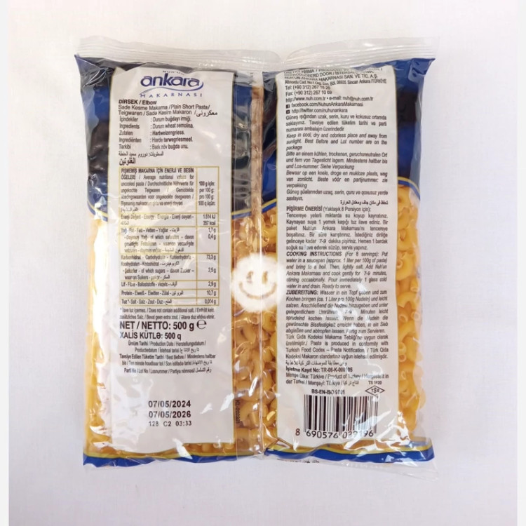 ماکارونی آنکارا طرح لوله ای 500گرم ترکیه