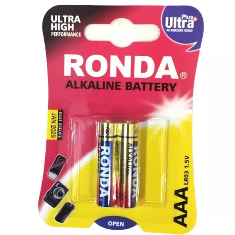 باتری نیم قلمی AAA روندا آلکالاین کارت 2 تایی و بسته ی 10 کارتی
