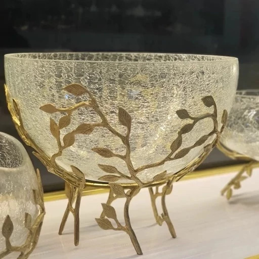 میوه خوری شیشه ترکی فریم برنجی قطر حدودا30