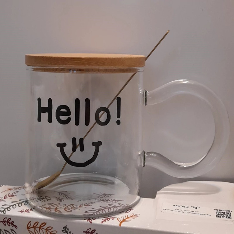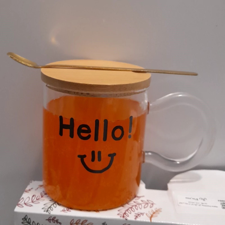 ماگ پیرکس طرح هلو دارای درب بامبو و قاشق مخصوص مناسب انواع نوشیدنی سرد و گرم ضد شوک جنس وارداتی