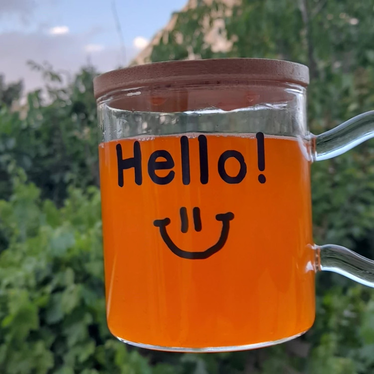 ماگ پیرکس طرح هلو مناسب نوشیدنی سرد و گرم ضد شوک جنس وارداتی