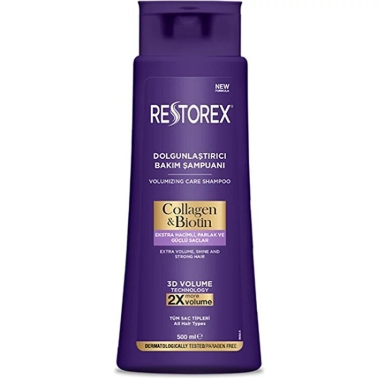 شامپو حجم دهنده مو رستورکس Restorex حاوی کلاژن و بیوتین مناسب انواع مو 500 میل شکلاتیک ترکیه