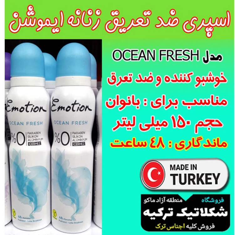 اسپری ضد تعریق زنانه ایموشن مدل OCEAN FRESH حجم 150 میلی لیتر با ماندگاری 48 ساعت ، خوشبو و با ترکیبات کاملا گیاهی