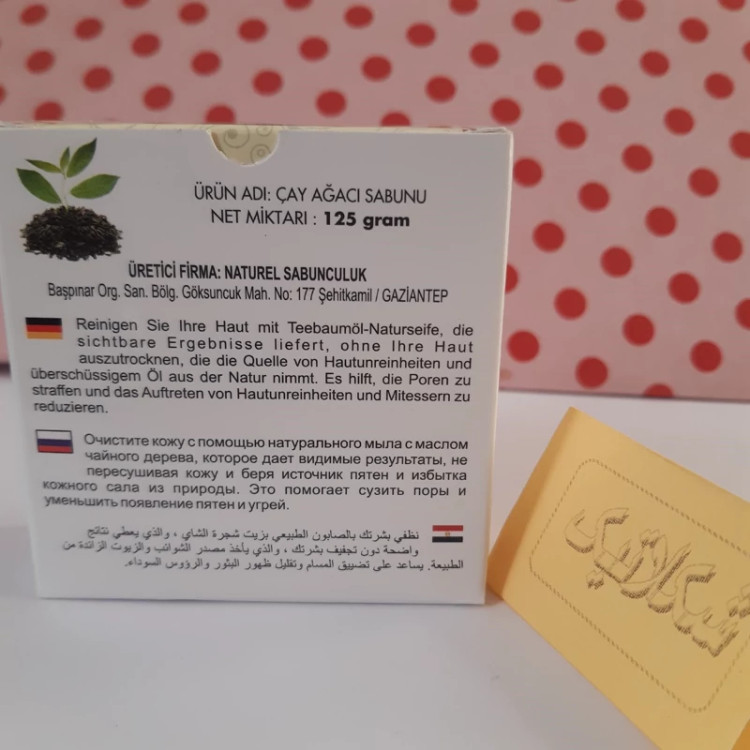 🇹🇷 پوست خود را با صابون طبیعی روغن درخت چای تمیز کنید. این صابون طبیعی، بدون خشک کردن پوست شما نتایج قابل مشاهده می دهد که منبع لک و چربی اضافی را از طبیعت می گیرد. به سفت شدن منافذ و کاهش ظاهر لکه ها و جوش های سر سیاه کمک می کند.