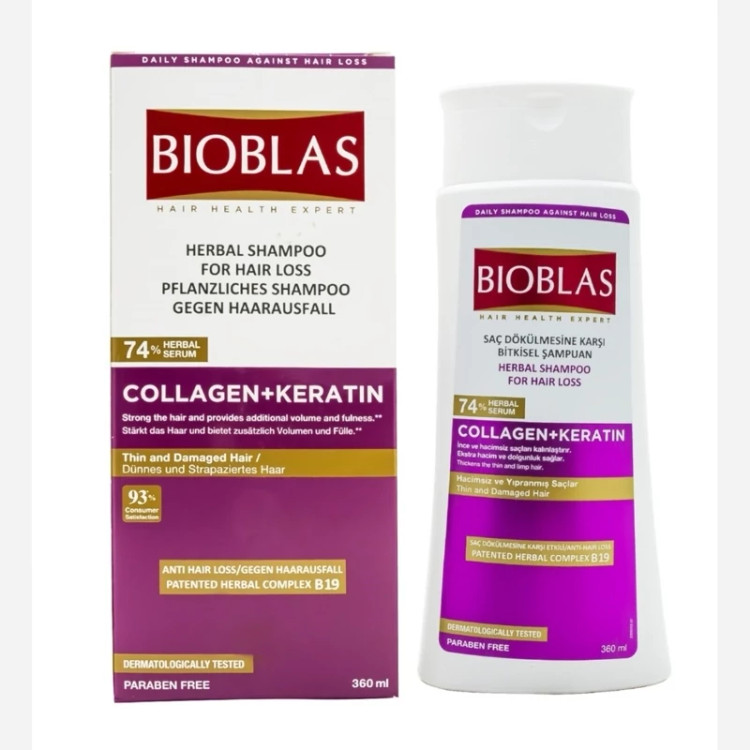 شامپو گیاهی ضد ریزش کلوژن کراتینه بیوبلاس مناسب موهای نازک و آسیب دیده 360 میل