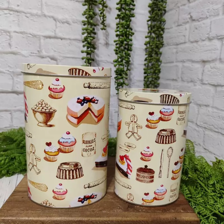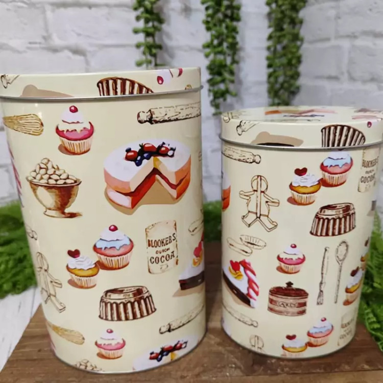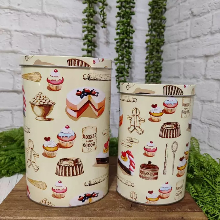جعبه فلزی دوسایز مدل مکعبی طرح کاپ کیک