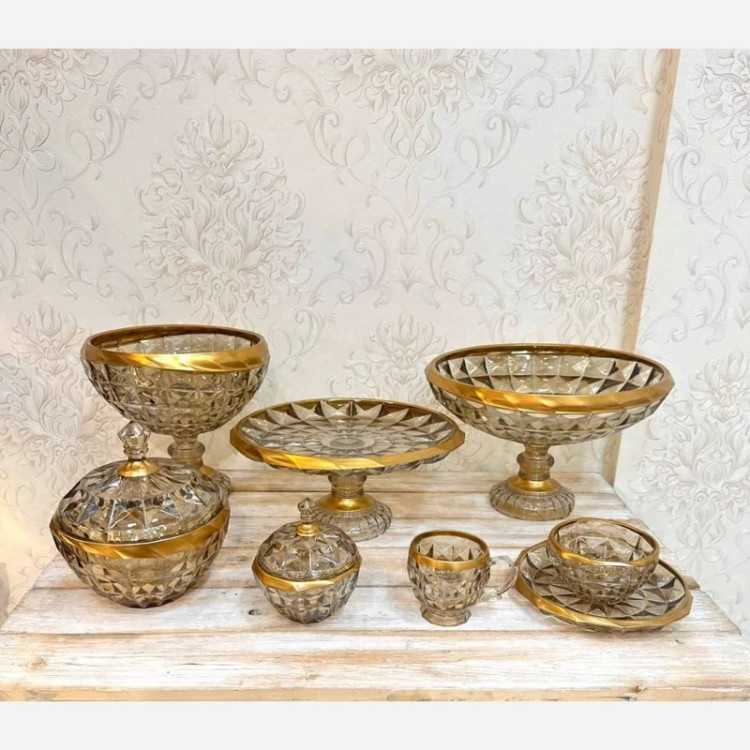 یک عدد شیرینی خوری با پایه بلور