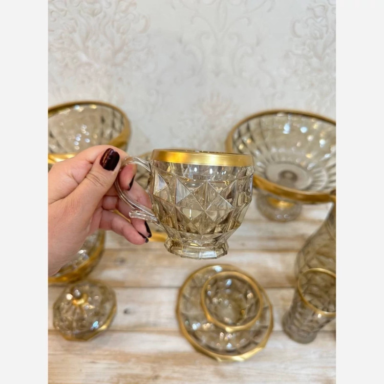 سرویس 25پارچه شامپاینی لب طلای اکومارین