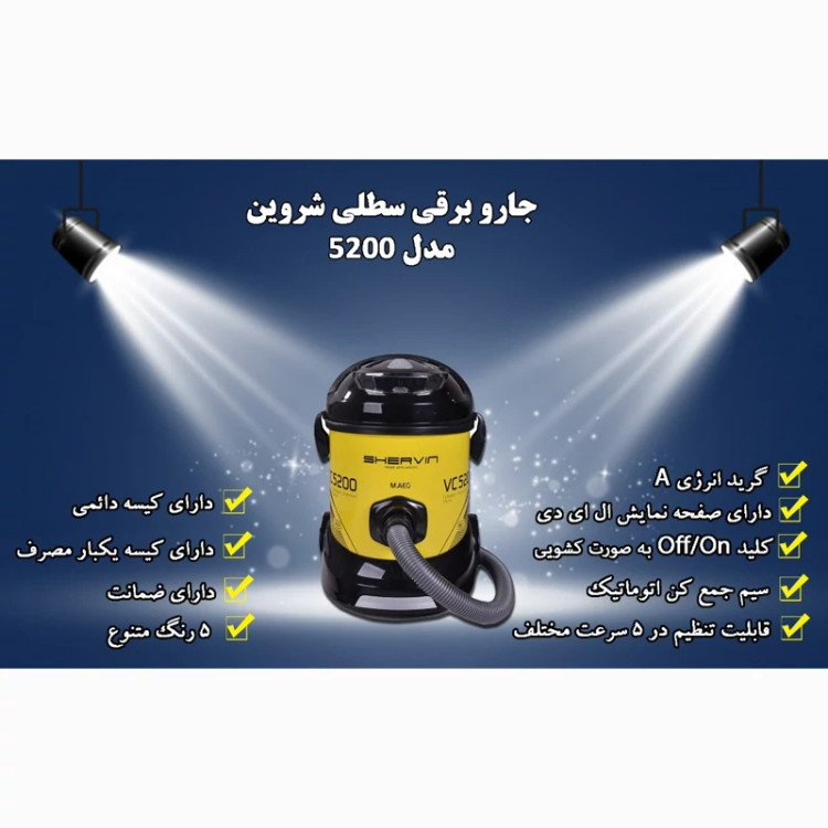 جاروبرقی سطلی شروین کد5200 شرکتی و با ضمانت با مکش عالی هزینه ارسال به عهده مشتری محترم پسکرایه