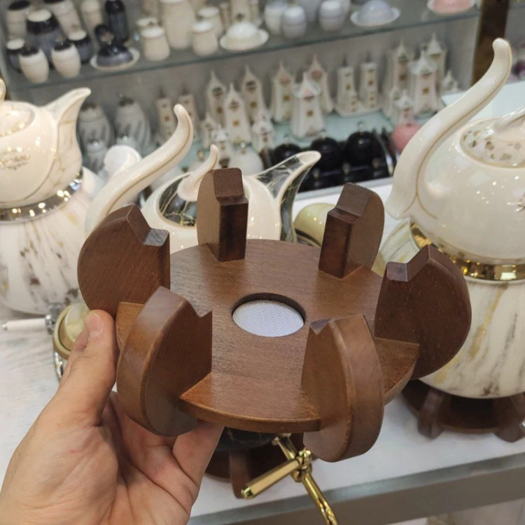 کتری قوری ماربل با پایه چوبی وارمر دار