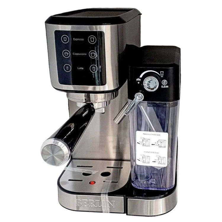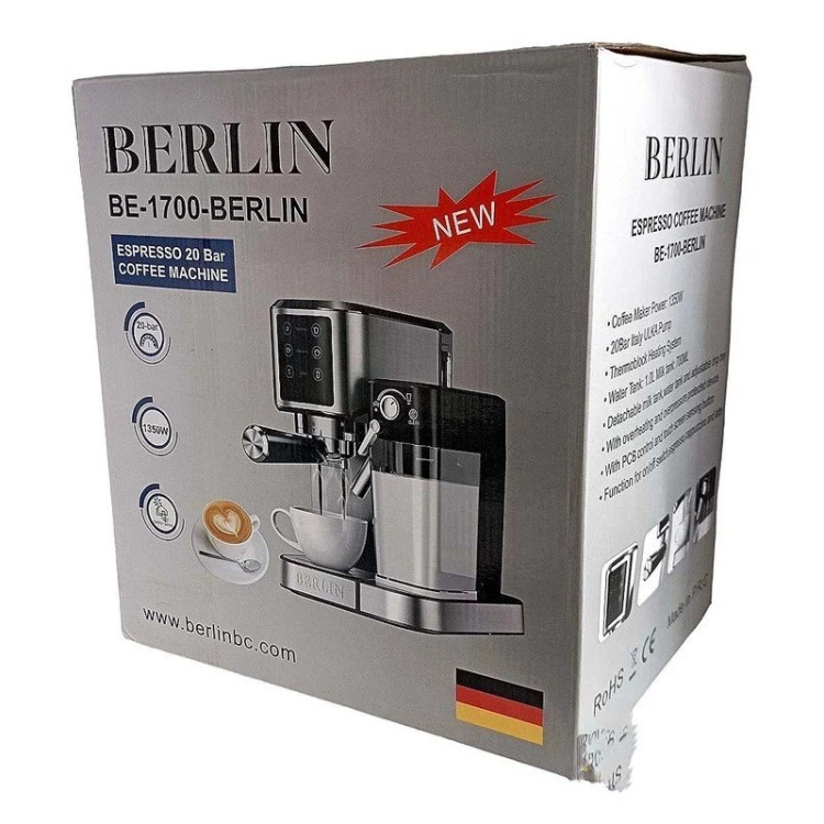 اسپرسوساز برلین BE-1700 ویژگیهای برجستهای را در اختیار کاربران قرار میدهد که قطعاً شما را ناامید نخواهد کرد. این اسپرسوساز دستگاهی است که به شما کمک میکند تا به سرعت یک فنجان قهوه خوشمزه بسازید و در زمان و تلاش حداکثر صرفه جویی کنید. اسپرسو ساز دارای تن رنگ سیلور و مشکی پیچیده و مجلل است. بدنه از فولاد ضد زنگ محکم و براق ساخته شده است که زیبایی فضای خانه شما را افزایش میدهد. ظرفیت 1350 وات به دستگاه کمک میکند تا با ثبات کار کند، آب را به سرعت بجوشاند تا در مدت زمان کوتاهی یک فنجان قهوه ایجاد کند. ظرفیت مخزن آب دستگاه 1 لیتر است که در هر بار 10 فنجان قهوه تولید میکند. طراحی جدید با صفحه نمایش لمسی، کارکرد آسان، به شما کمک میکند نوشیدنی مورد علاقه خود را تنها با یک لمس بنوشید