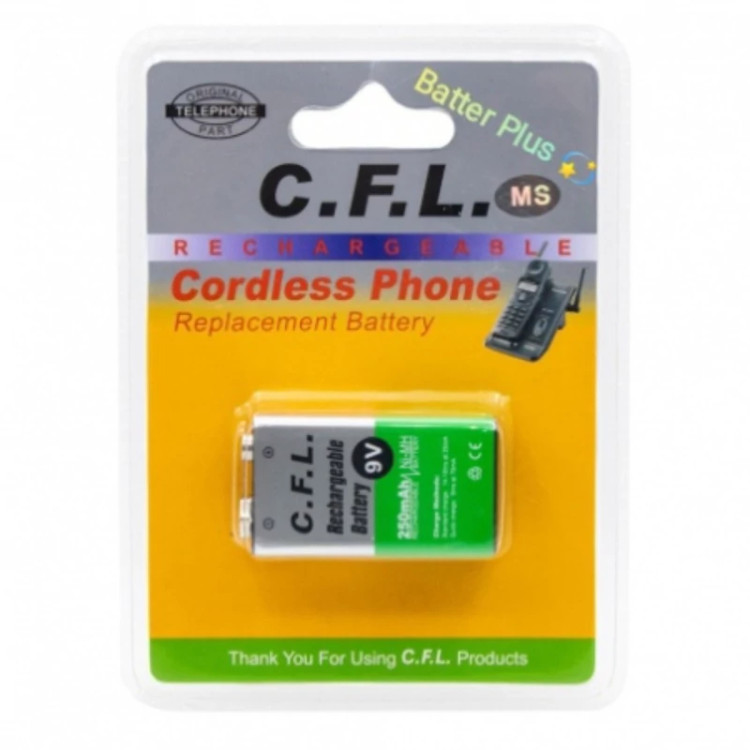 باتری کتابی 9 ولت شارژی 250 میلی آمپر مارک سی اف ال C.F.L