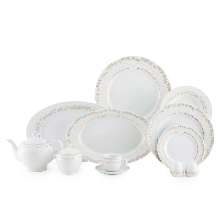 سرویس فوق دارای یک عدد پیاله به قطر 26 سانتی متر، بشقاب غذاخوری به قطر 28 سانتی متر، بشقاب میوه خوری به قطر 22 سانتی متر و یک عدد دیس گرد به قطر 34 سانتی متر است. ضمناً سرویس مذکور فاقد سوپ خوری دردار است