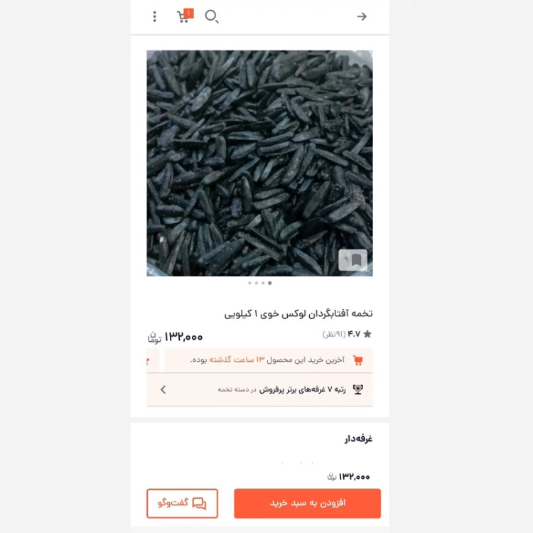تخمه آفتابگردان لوکس خوی 50 کیلویی (پس کرایه)