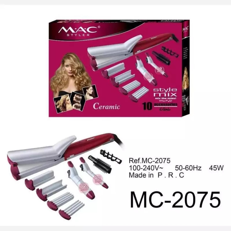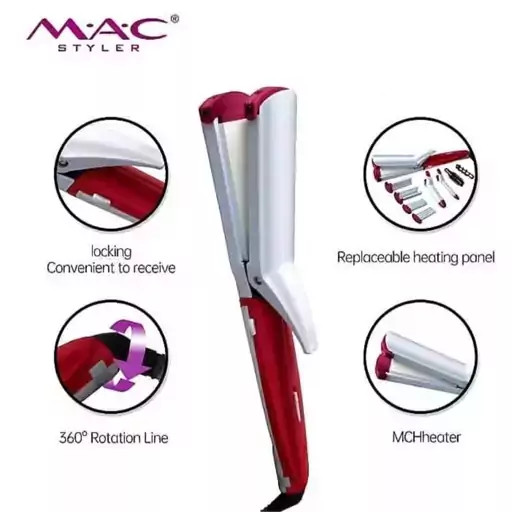توضیحات:اتو مو سرامیکی مک استایلر مدل MC-2075 دارای قدرت 37 وات میباشد محصولی حرفه ای و یک ست کامل برای آرایش موی شماست و در واقع میتوان گفت شگفتی و تحولی عظیم در تولید و ساخت اتو مو است چرا که آخرین فناوری ها را در خود دارد به طوری که شما می توانید همزمان با اتو موی 10 کاره مک استایلر موهای خود را بپیچید و حالت دهید و فرم دلخواه خود را روی موها پیاده کنید.اتو موی 10 کاره مک استایلر شما را قادر می سازد که در منزل موهای خود و اطرافیانتان را با زیبایی هر چه بیشتر به حالت های مختلف در بیاورید و از زیبایی و لطافت موهای خود لذت ببرید.مک استایلر برندی موفق و معتبر در زمینه تولید اتو موهاست. ظاهر زیبا و عملکرد دقیق، جزئی از ویژگی های این نمونه است. مدلی که به صورت حرفه ای و به تناسب سالن های زیبایی طراحی شده است. امکانات مدرن و فناوری های نوینی در این محصول به کار گرفته شده است. متریال مرغوب و عملکرد مطلوبی به این نمونه اختصاص یافته است. نوع طرح بدنه و عملکردهای مرتبط به آن در ادامه بیان می شود.شکل زیبا و فوق العاده خوش رنگ اتو مو مک استایلر مدل MC-2075 در چشم بیننده خوش می درخشد. بطوری که رنگ ترکیبی این نمونه آن را بسیار مورد توجه قرار داده است. ساختار دسته آن متناسب با فرم دست طراحی شده است و تمامی صحفات آن توسط سیستم ایمنی منحصر به فردی قابل تعویض هست. به بیانی دیگر، خوش دست بوده و کار کردن با آن بسیار آسان است.بخش اصلی و عملکردی این محصول، صفحات اعمال حرارت آن می باشد. این صفحات اندازه ای پهن و عریض دارند. اندازه آن ها باتوجه به نوع صحفه متفاوت می باشد بطوری صفحات صاف کننده موها 36 میلی متری، صفحه موج دار کننده 36 میلی متری، اتوی فر کننده با قظر های 16 و 19 میلی متری و مارپیچ کشویی با قطر 19 میلی متری می باشند. جنس این صفحات از سرامیک بوده و از مقاومت و دوام ساختاری برخوردار است. سرامیک حرارت را به طور یکنواخت و متعادل روی کل سطح پخش می نماید.