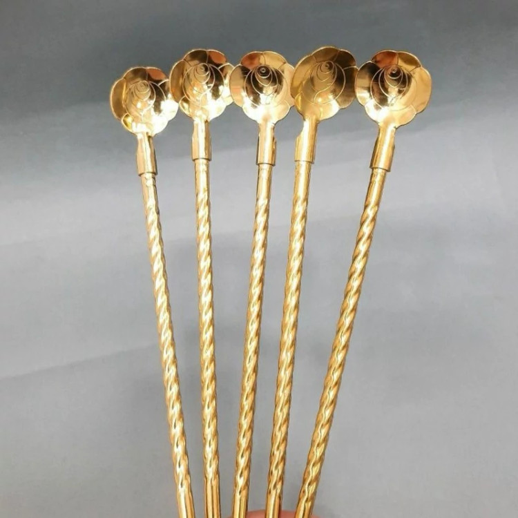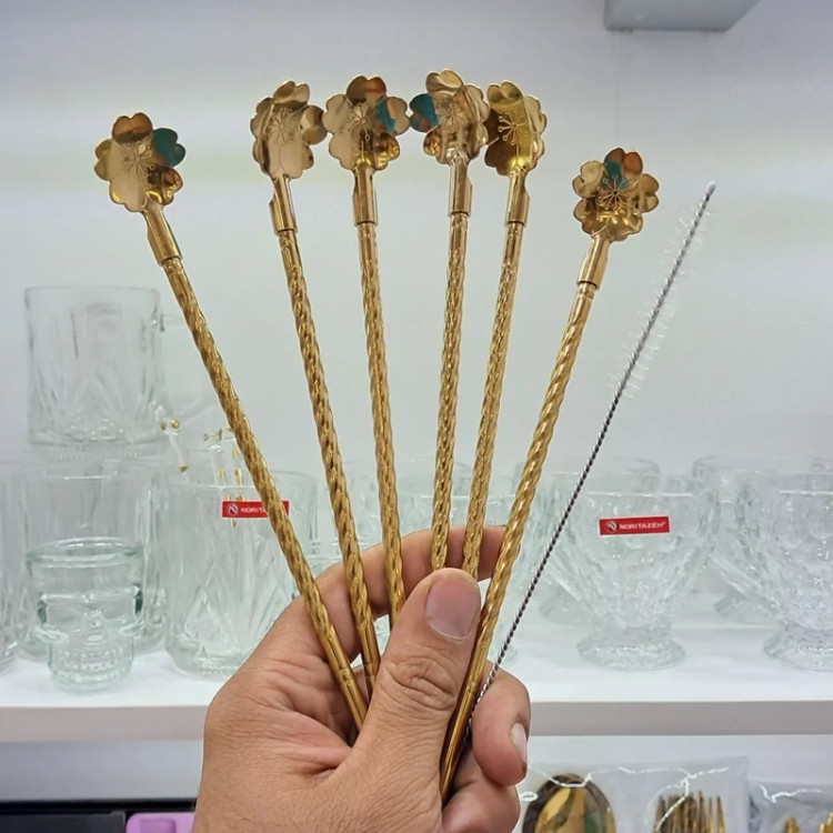 نی شربت خوری استیل نی شربت خوری طلایی نی شربتخوری 6عددی قاشق نی دارطلایی