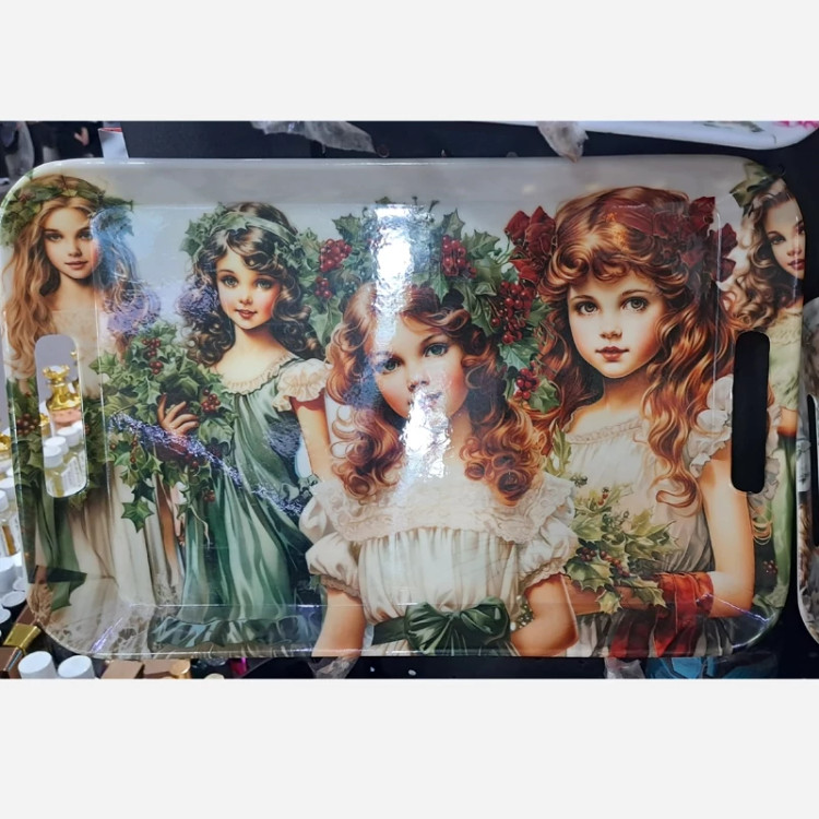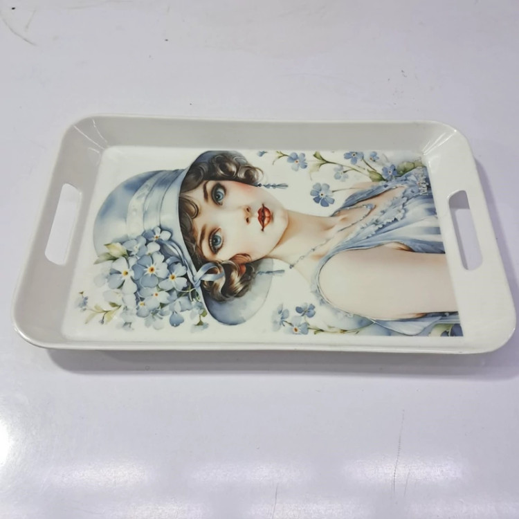 سینی ملامین مستطیل دسته دار سایز 35 سانتی طرح دار رنگ ثابت نسوز و نشکن