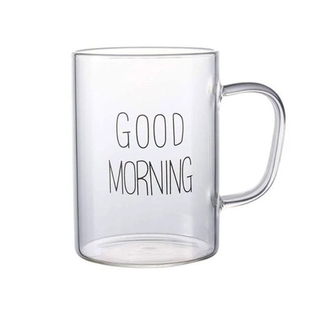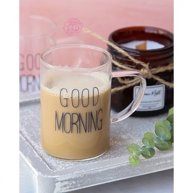 ماگ گرد استوانه ای مدل گود مورنینگ شعله مستقیم ماگ پیرکس ماگ گرد پیرکس لیوان پیرکس good morning ماگ شیشه ای