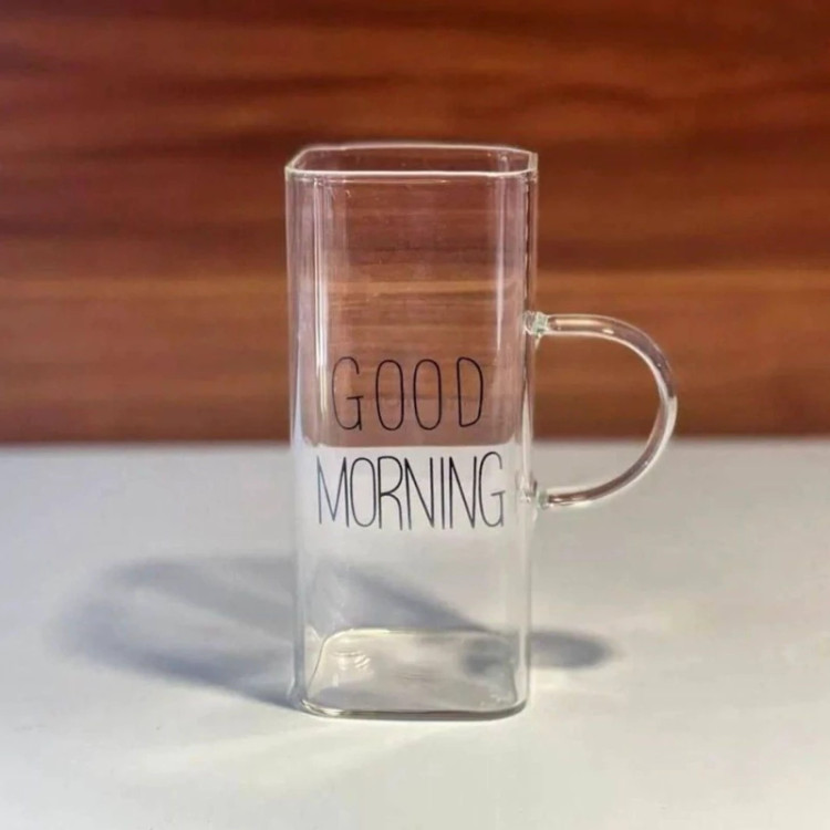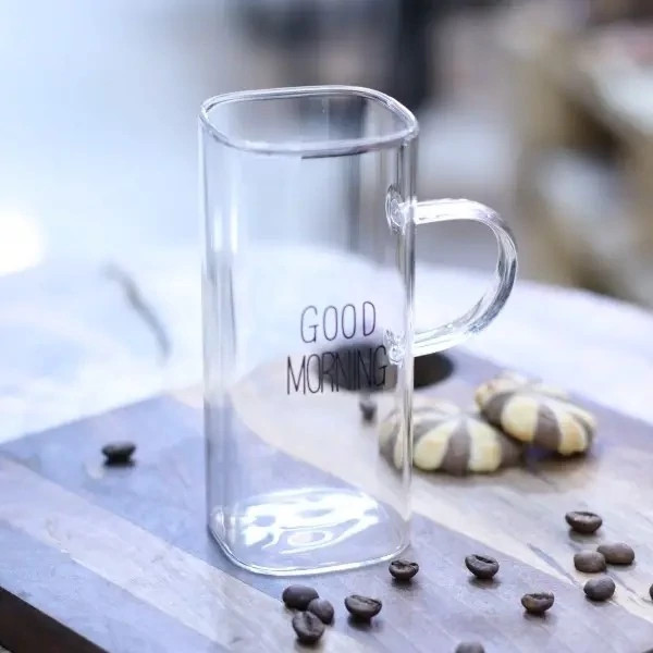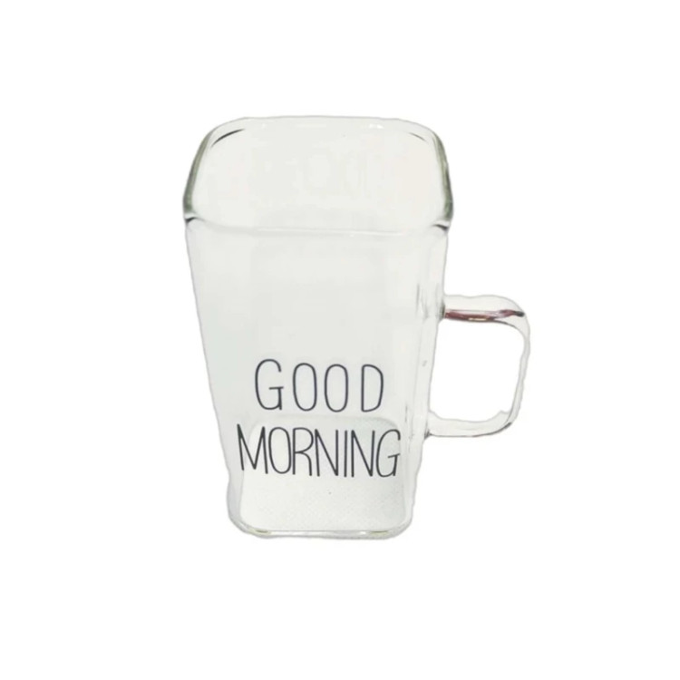 ماگ پیرکس گود مورنینگ مکعبی سایز بزرگ شعله مستقیم لیوان پیرکس بلند ماگ مکعبی گود مورنینگ مکعبی