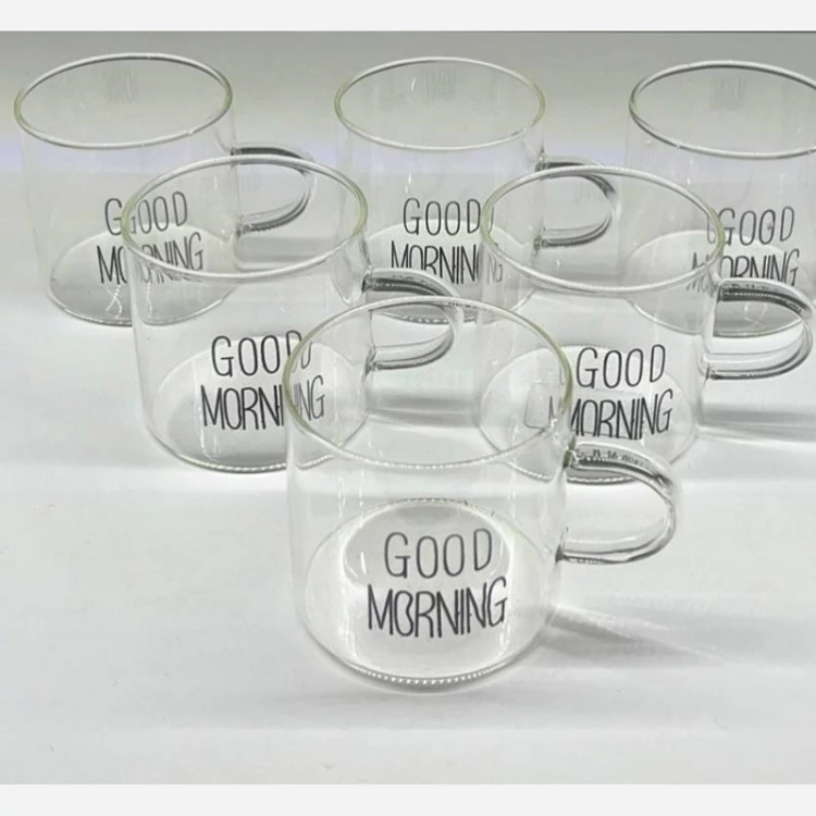 شات پیرکس گود مورنینگ دست 6عددی شات گودمورنینگ شات شیشه ای لیوان کوچک شات قهوه خوری پیرکس لیوان پیرکس