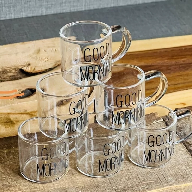شات پیرکس گود مورنینگ دست 6عددی شات گودمورنینگ شات شیشه ای لیوان کوچک شات قهوه خوری پیرکس لیوان پیرکس