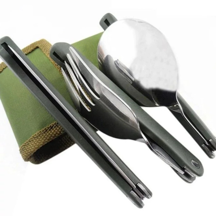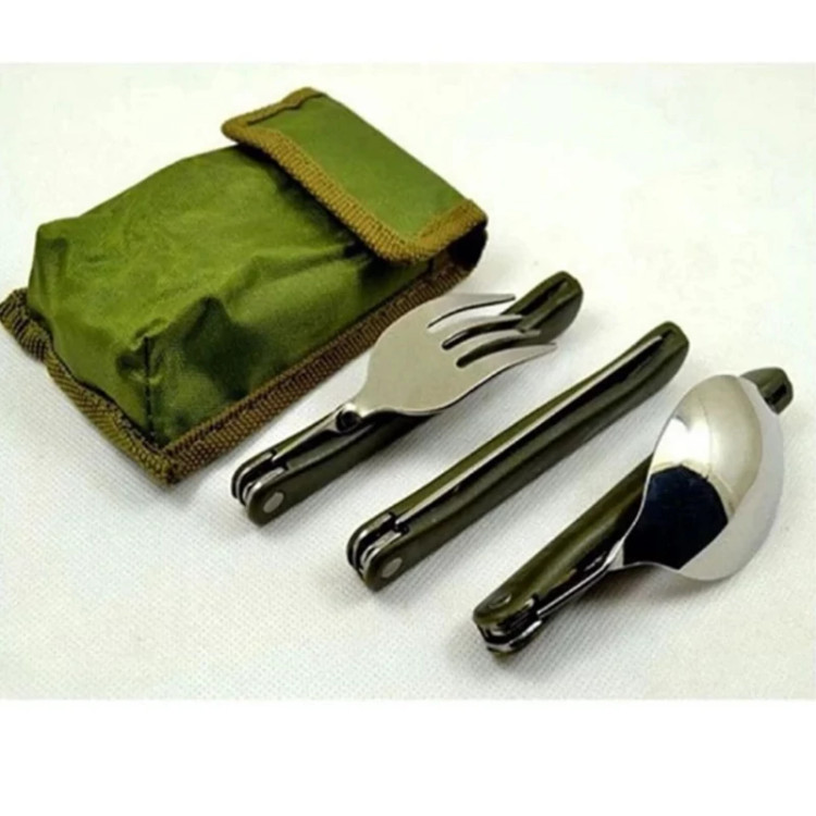 ست قاشق چنگال کارد مسافرتی تاشو ارتشی کم حجم قاشق چنگال تاشو کمپی