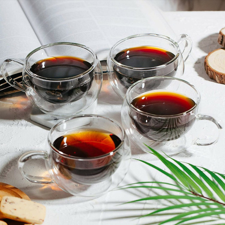 دارای بدنه دوجداره قابلیت حفظ دمای حداکثری نوشیدنی حجم 150 میلیلیتر دسته دار جنس بدنه شیشه