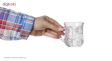 در مهمانیهای دوستانه میتوانید از ماگها و لیوانهایی که خودتان دوست دارید برای پذیرایی استفاده کنید. ولی در مراسمهای رسمی ترجیح بر این است که از فنجان برای سرو چای استفاده شود، زیرا توجه به انتخاب ظروف از مهمترین اصول پذیرایی است. فنجان ساکورا سری می جی مدل 8740203W با طراحی مدرن و زیبایی که دارد به برگزاری هرچهبهتر مهمانیهای شما کمک خواهد کرد. این ست فنجان شش عددی دارای دسته بوده و همین امر مانع از سوختن دست در هنگام برداشتن چای داغ میشود. سطح مقطعی پهن داشته و با وجود کمری نسبتا باریک و قطر دهانه 8.5 سانتیمتری ظاهری زیبا به خود گرفته است. دارای بدنهای شفاف است که باعث میشود رنگ چای شما کدر دیده نشود. در صورت سرو نوشیدنی سرد و گرم نیز دچار مشکل نخواهد شد ولی مانند تمام ظروف کریستال و شیشهای با ایجاد شوک حرارتی ممکن است شکسته شود.
