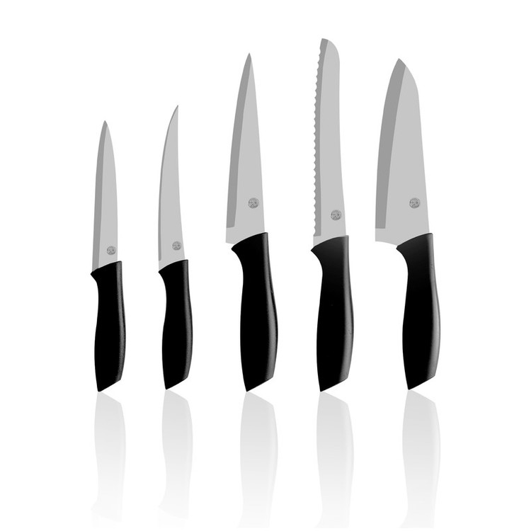این محصول شامل : 1 عدد چاقوی برش به ابعاد 27 سانتی متر - 1 عدد چاقوی برش نان به ابعاد : 29 سانتی متر - 1 عدد چاقوی همه کاره به ابعاد : 27 سانتی متر - 1 عدد چاقوی آشپزخانه به ابعاد : 21 سانتی متر - یک عدد چاقوی میوه به ابعاد : 23 سانتی متر
