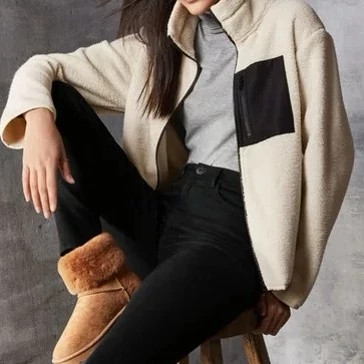 کاپشن تدی زنانه برند آلمانی esmara رنگ کرم کاپشن اسمارا
