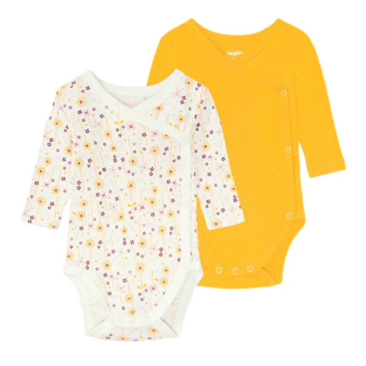 پک دو عددی بادی بچگانه برند آلمانی lupilu سایز 2تا6 ماه بادی لوپیلو زیر دکمه لوپیلو زرد و سفید