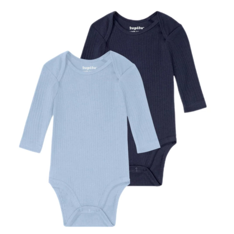 پک دو عددی بادی کبریتی بچگانه برند آلمانی lupilu سایز 6تا12 ماه رنگ سرمه ای و آبی بادی لوپیلو زیر دکمه لوپیلو