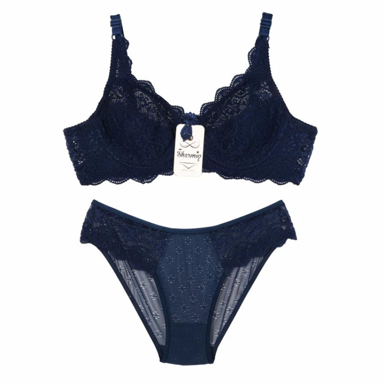 ست لباس زیر زنانه برند sharmin سایز 80 رنگ سرمه ای ست لباس زیر گیپور شارمین