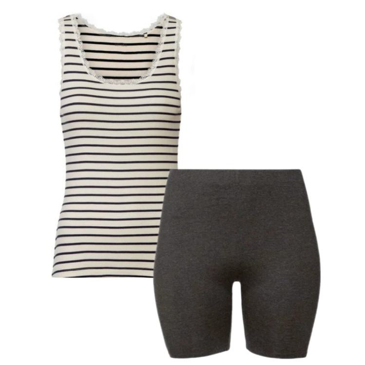 جنس تاپ 95٪ نخ پنبه کبریتی یقه گیپور و شلوارک 67٪ نخ لطیف و بدون ایجاد حساسیت، سبک و راحت مناسب استفاده روزانه