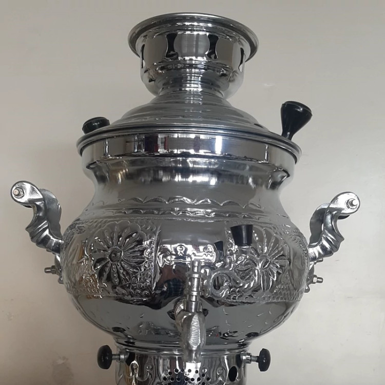 سماور 6 لیتری قلم زنی شده برند شبنم پایه کله شیری در جه یک ساخت ایران