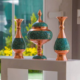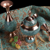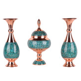 ست فیروزه کوبی سه تکه گلدان و شکلات خوری مس فیروزه کوبی نیشابور ست هدیه صنایع دستی سایروس