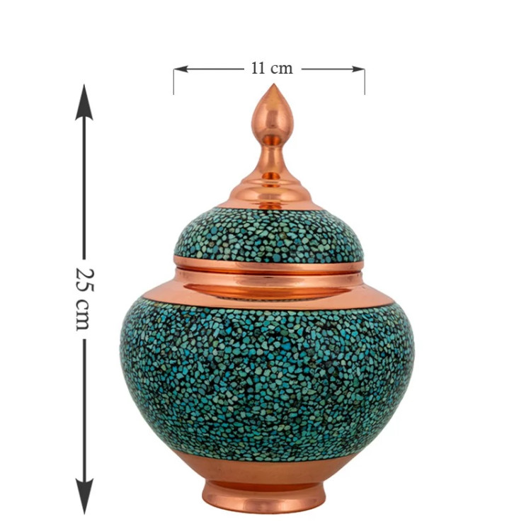 قندان سیبی فیروزه کوبی 25 سانتی گز خوری یا شکلات خوری فیروزه کوبی نیشابور صنایع دستی سایروس