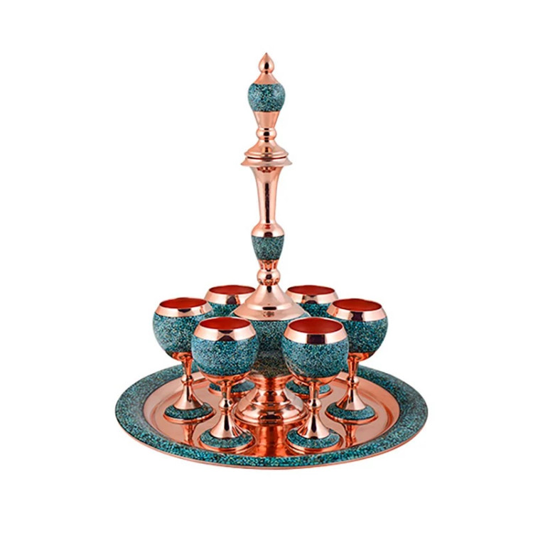 سرویس شربت خوری فیروزه کوبی نیشابور جام فیروزه کوبی و تنگ فیروزه کوبی نیشابور سرویس شربت خوری صنایع دستی سایروس