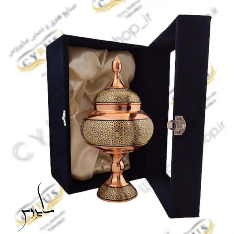 شکلات خوری مس و خاتم و جعبه جیر هدیه صنایع دستی شکلات خوری خاتم و باکس هدیه صنایع دستی سایروس