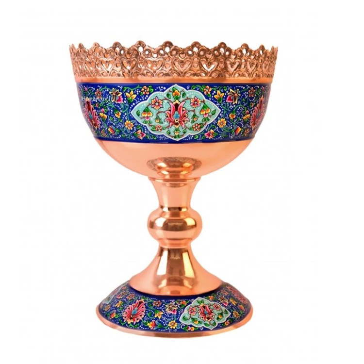 آجیل خوری مس و پرداز بزرگ میوه خوری 33 سانتی نقاشی و کاسه پایه دار صنایع دستی