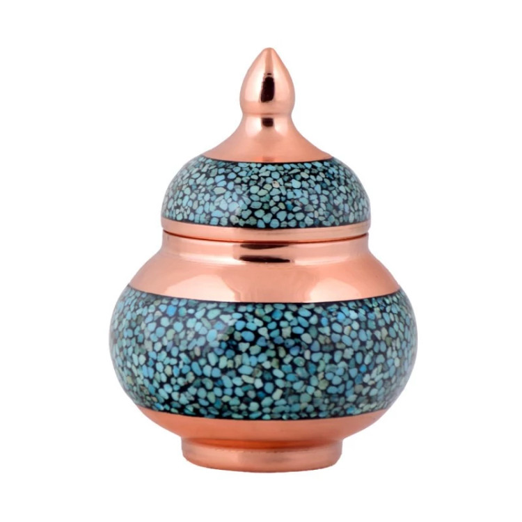 قندان مس و فیروزه کوبی نیشابور 19 سانت صنایع دستی سایروس