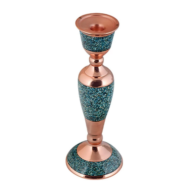 شمعدان فیروزه کوبی 20 سانتی پک دو عددی صنایع دستی سایروس شمعدان مس و فیروزه کوبی نیشابور