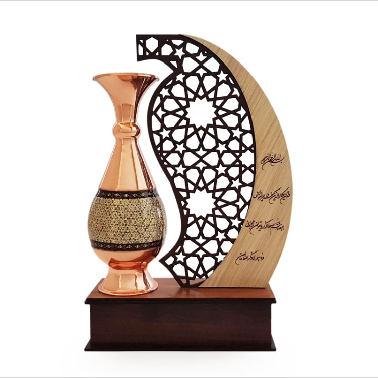 تندیس گلدان 16 مس و خاتم صنایع دستی و یاد بود و دکوری و کادویی مناسبتی و تبلیغاتی و هدیه تندیس خاتم کاری صنایع دستی