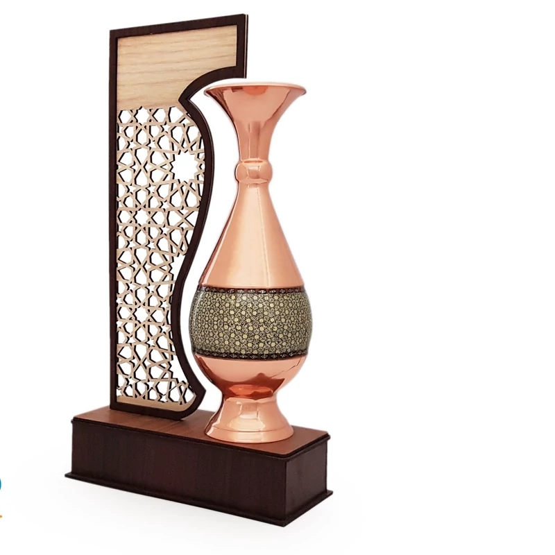 تندیس گلدان 16 مس و خاتم صنایع دستی و یاد بود و دکوری و کادویی مناسبتی و تبلیغاتی و هدیه تندیس خاتم کاری صنایع دستی