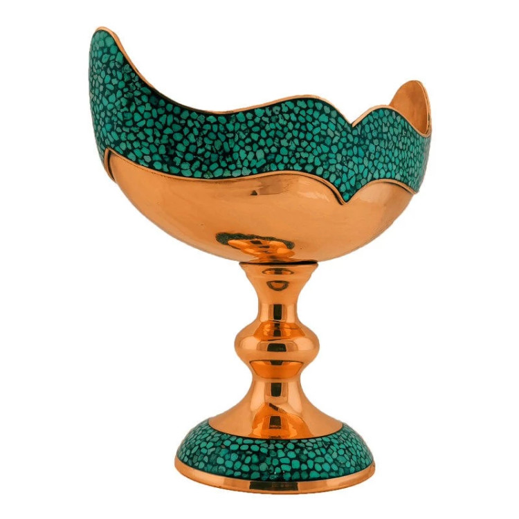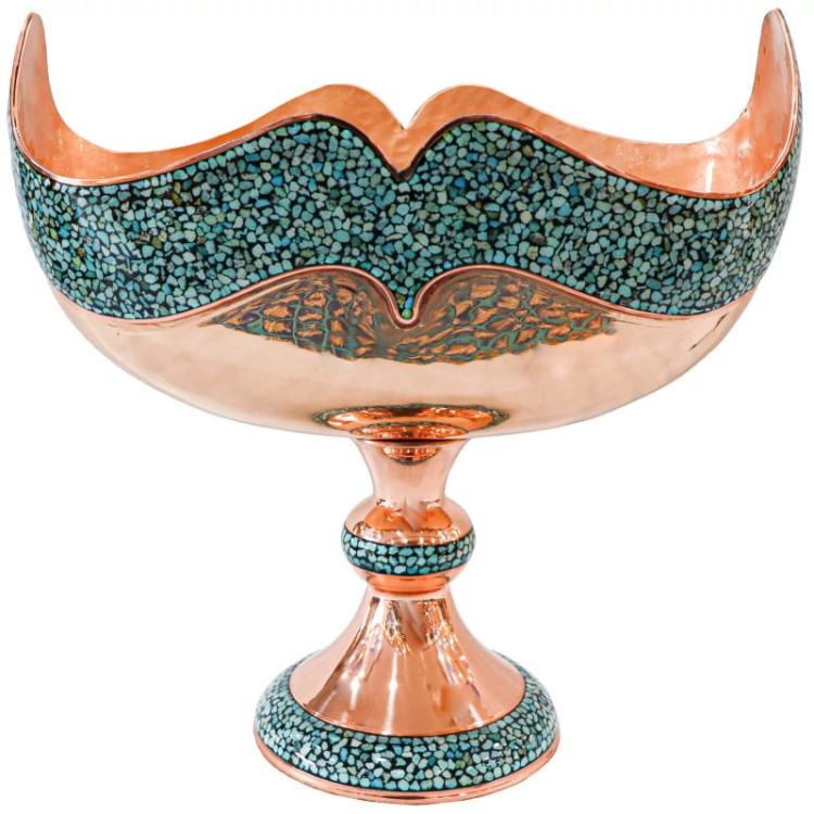 کشکول بزرگ فیروزه کوبی 30 سانتی یا آجیل خوری فیروزه کوبی نیشابور یا شکلات خوری مس و فیروزه کوبی صنایع دستی سایروس