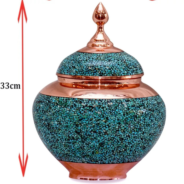 قندان سیبی سوپر فیروزه کوبی 33 سانتی مس و فیروزه کوبی نیشابور صنایع دستی سایروس شکلات خوری