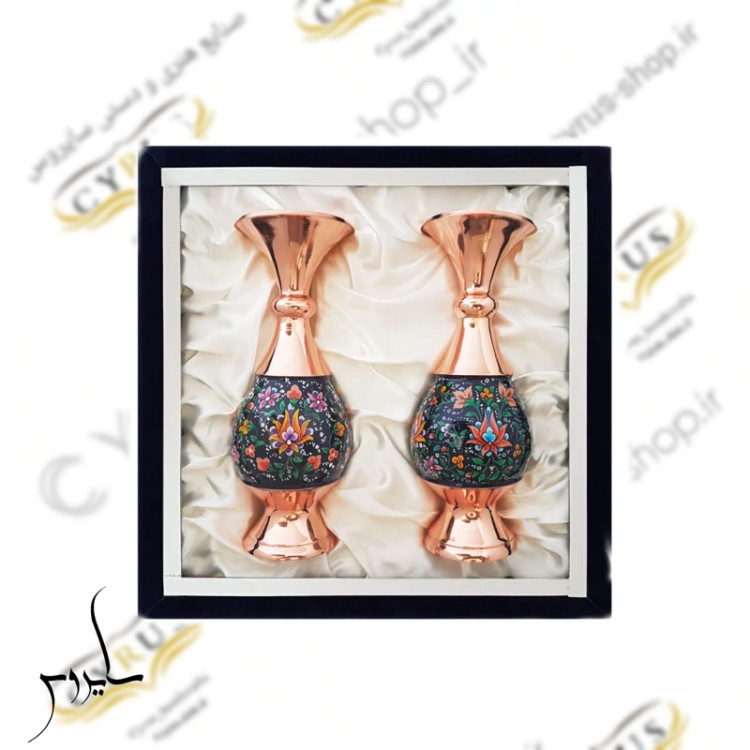 پک هدیه گلدان مس و پرداز جعبه کادویی صنایع دستی جعبه و جفت گلدان مس و نقاشی یک جفت گلدان مس و پرداز