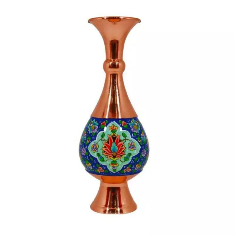 گلدان مس و پرداز 20 سانتی گلدان مس و نقاشی صنایع دستی سایروس
