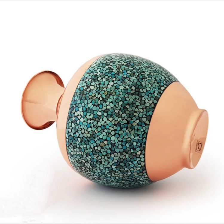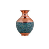 بلونی یا گلدان شکمی مس و فیروزه کوبی نیشابور 23 سانت گلدان خمره ای صنایع دستی سایروس