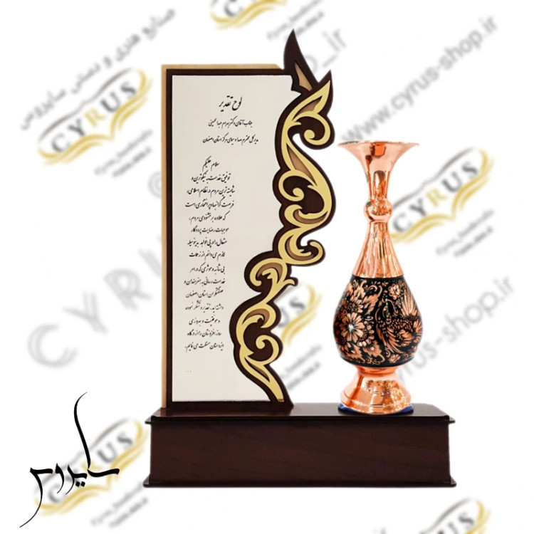 تندیس و لوح تقدیر صنایع دستی تندیس و هدیه ارگانی و سازمانی لوح تقدیر گلدان مس و الماس تراش صنایع دستی سایروس